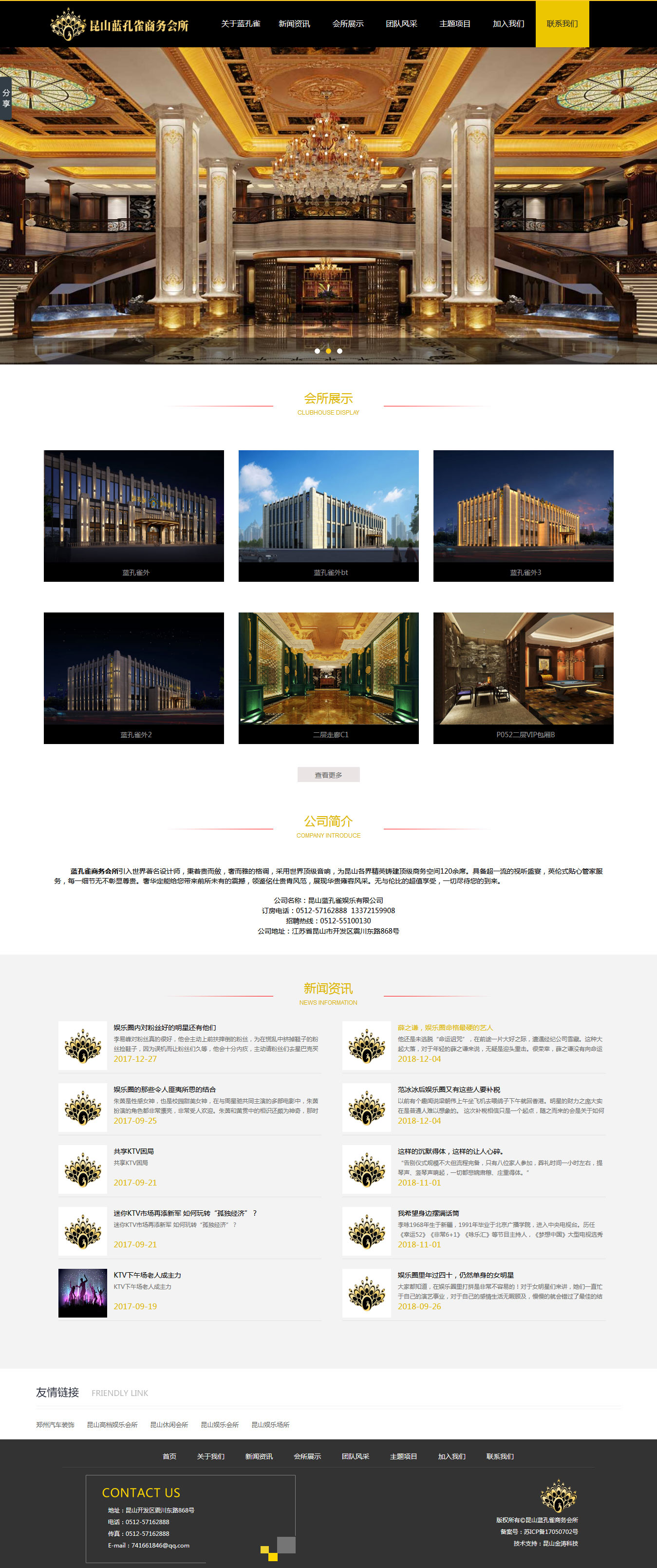 蓝孔雀商务会所引入世界著名设计师,秉着贵而斂,奢而雅的格调,采用世界顶级音响,为昆山各界精英铸建顶级商务空间120余席。具备超一流的视听盛宴,英伦式贴心管家服务,每一细节无不彰显尊贵。奢华定能给您带来前所未有的震撼,领鉴佲仕贵胄风范,展现华贵雍容风采。无与伦比的超值享受,一切尽待您的到来。