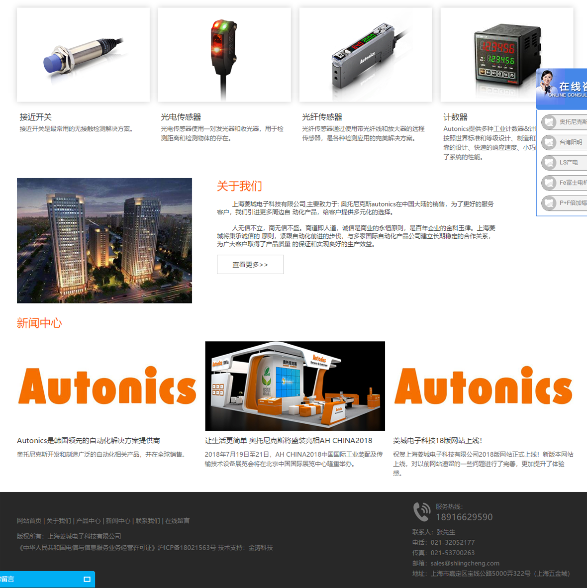 上海菱城电子科技有限公司是奥托尼克斯 (Autonics)中国大陆授权经销商,2011年成立,随后就建立了官方网站,公司主要依靠网络营销,但由于原网络服务商提供不了服务,之后经多次考察,对上海金涛信息科技有限公司昆山分公司的设计能力和服务能力认可,合作至今。