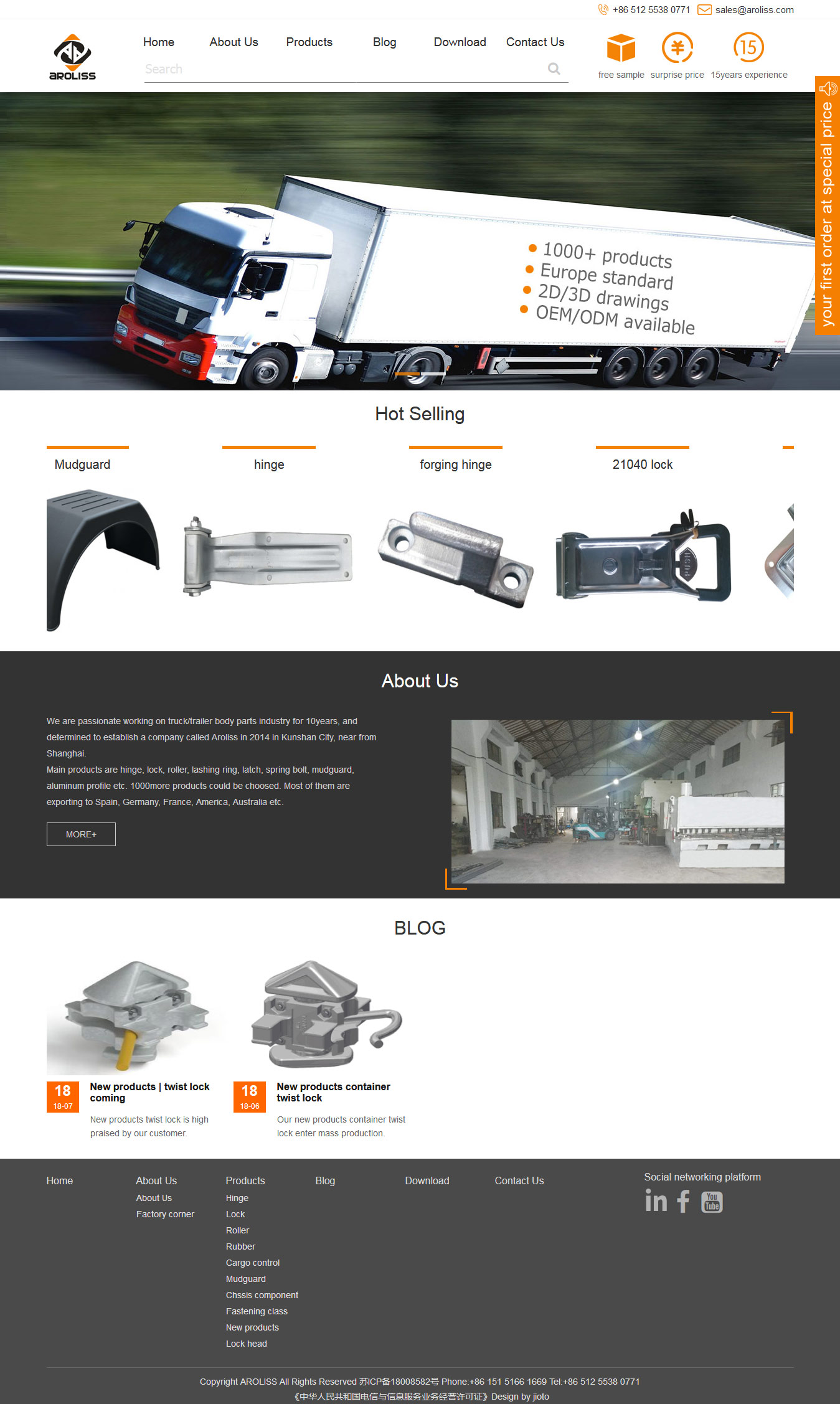 We are passionate working on truck/trailer body parts industry for 10years, and determined to establish a company called Aroliss in 2014 in Kunshan City, near from Shanghai.